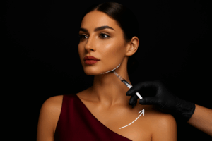 الرسم والتخطيط: يقوم الطبيب بتحديد نقاط الحقن أو مناطق الشد بدقة على البشرة.